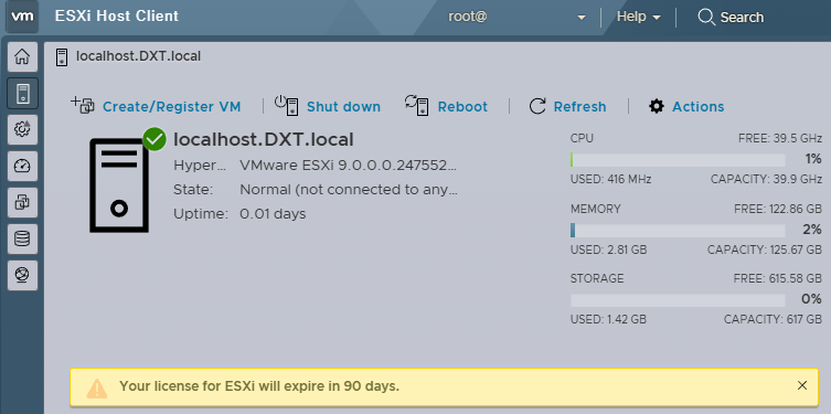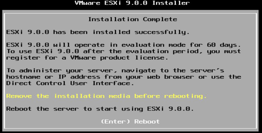 The VMware ESXi Installer will say that ESXi will operate in evaluation mode for 60 days, which is true for all versions of ESXi that are not 9. With ESX 9, the evaluation mode is now 90 days.