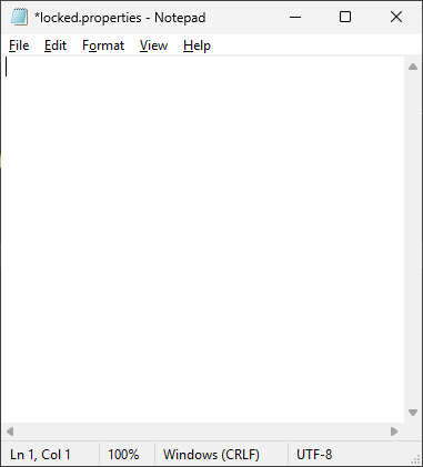 The locked.properties file works by having one line per setting. On each line, the first item is the setting you want to change, followed by the = symbol (you can add spaces around the = symbol if you want). After the = symbol, you enter what you want the setting changed to.