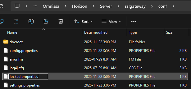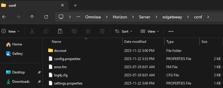 • Browse to C:\Program Files\Omnissa\Horizon\Server\sslgateway\conf\