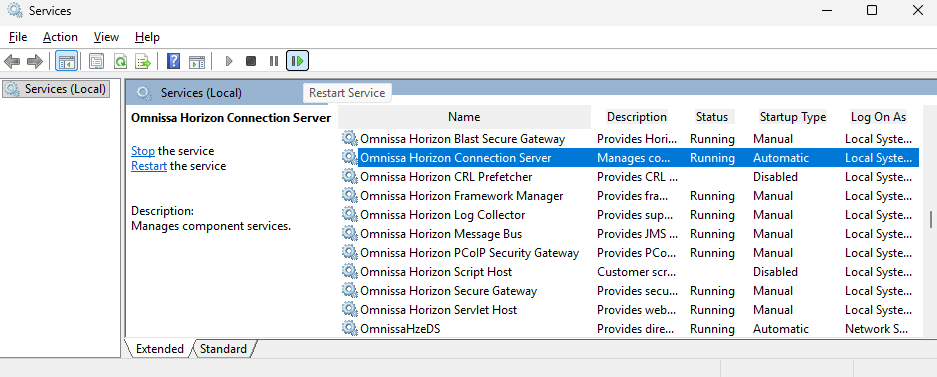 In VMware branded versions of Horizon, the service will be named VMware Horizon View Connection Server.