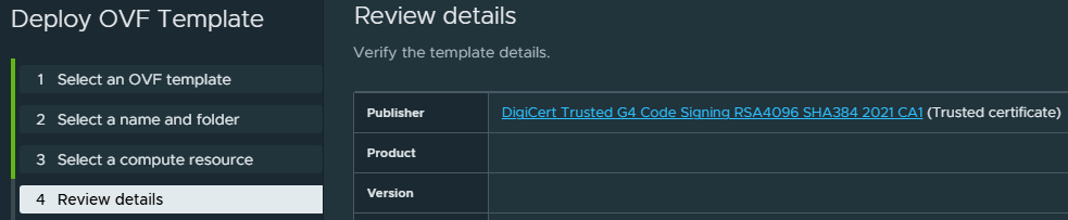 Typically, importing an OVA or OVF file is straightforward. However, after VMware vCenter version 7.0 Update 2, a new message began appearing when importing an OVA or OVF file. The message would say that the certificate is not trusted.