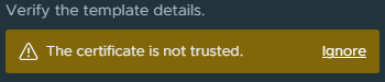 The next time you import an OVA containing those certificates in the certificate chain, it will show as a trusted certificate, and you won’t need to click ignore.