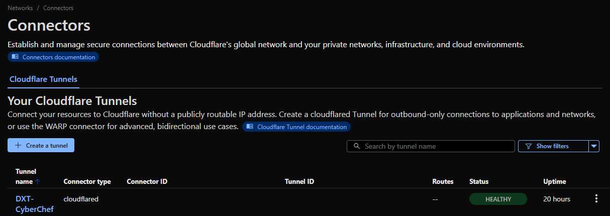 Now, if you wanted to expose your self-hosted version of CyberChef to the internet without opening any ports, you can do so with a Cloudflare tunnel.