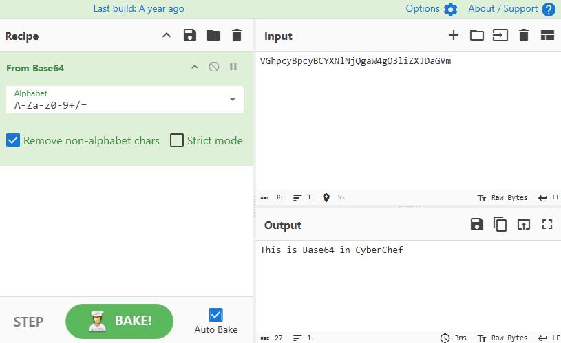 For example, if I wanted to decode the following Base64 string VGhpcyBpcyBCYXNlNjQgaW4gQ3liZXJDaGVm.