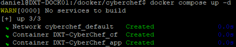 docker-compose-no-cf.ymland thesample.envfiles from my GitHub https://github.com/thedxt/CyberChef-Docker and place them in the folder. - Copy the