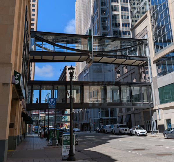Once we arrived in Minneapolis, we got all checked into the hotel. While we waited for our friends to arrive, we decided to explore downtown a bit. To my surprise, downtown Minneapolis actually has its own version of the Plus 15s that we have in Calgary, in Minneapolis they are called Skywalks. Plus 15s or Skywalks are a way to get around the downtown core without going outside. It’s super useful when the weather is bad. Minneapolis also has a double-decker Skywalk.