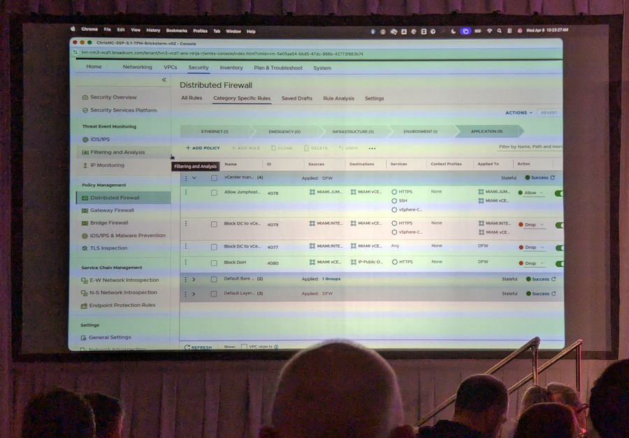 After Peter came Chris McCain’s session, Shrink the Blast Radius: Private Cloud Segmentation Made Easy, which covered the ways you could implement vDefend to reduce your attack surface against attacks such as Brickstorm.